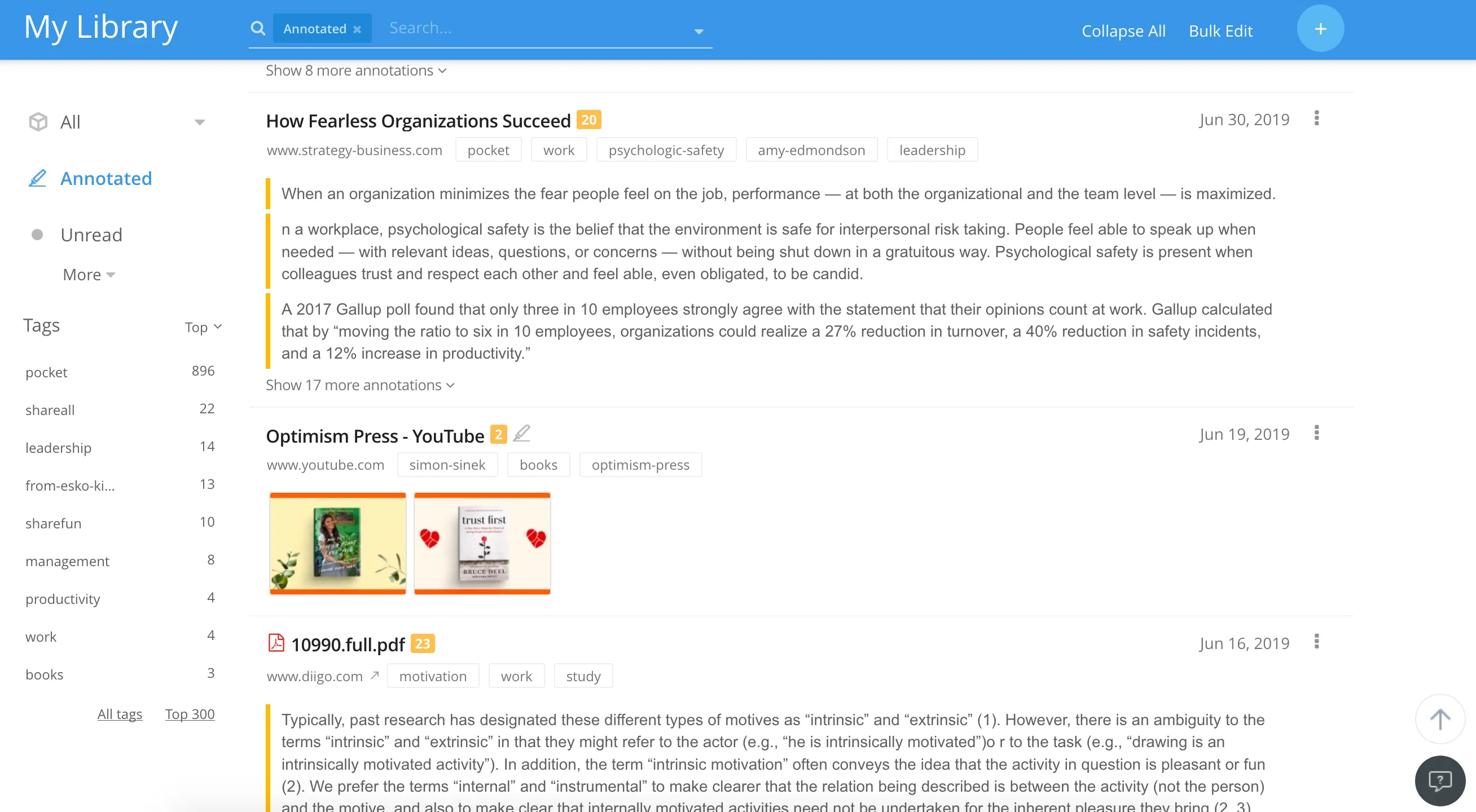 So besides offering features for collecting bookmarks and offline storage of web pages (premium version), it is quite good at highlights from computer or phone, something I was missing in Pocket. Besides that, every highlighted resource is shareable through unique and private (or public) URLs, a pretty nice feature.