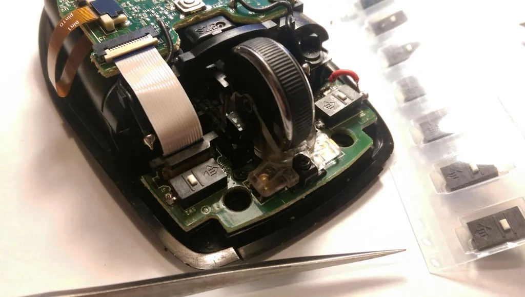 So for me the normal fix of sticking some pieces of carton on the clickers didn’t work. My left click was working from time to time, no matter how hard I pressed. Then I decided to replace the tiny little buggers.