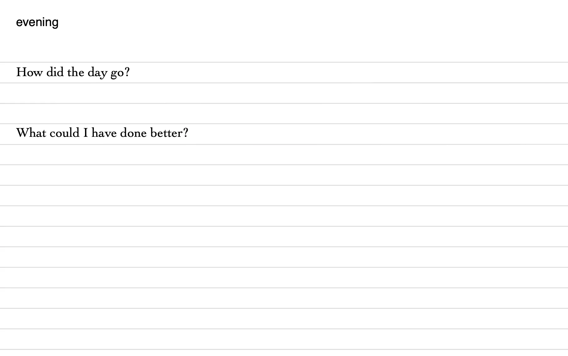 At the end of the day, I wrap it up with putting down some thoughts about how did the day go, with more focus on what went well, rather than on didn’t go so well. Finally, I write a few lines about what I could’ve done better through the day.
