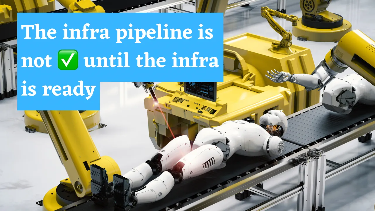In infra world, the same thing happens. When the pipeline finishes, the users of the infra will expect it to be working, when it fact, it might be starting up or be broken. If the result doesn’t match the expectations of the users, then they will reach out to the infra team for support.